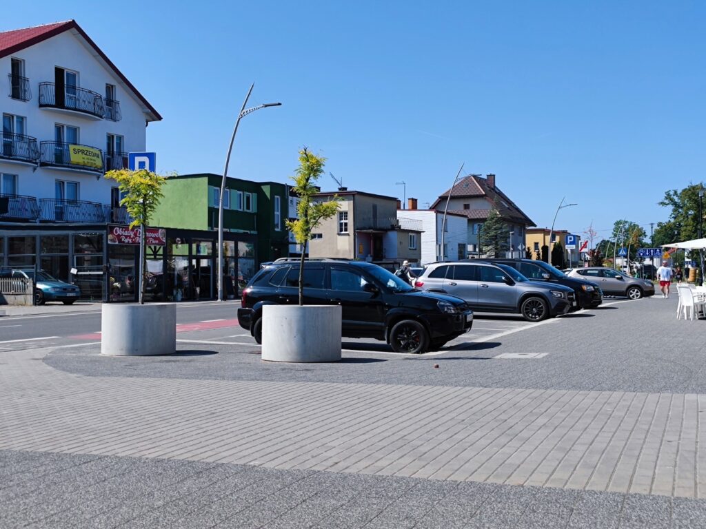 Do tego władze Mielna jakiś czas temu zdecydowały się na gruntowny remont głównej drogi przez miejscowość. Stare betonowe płyty zastąpił asfalt, poszerzono i wymieniono nawierzchnię chodników, dodano je też tam gdzie nie było ich wcześniej, a wszystko uzupełniono pasami drogi dla rowerów, biegnącymi w obie strony. Niby wszystko super, szczególnie te nowe chodniki, tylko, że rewitalizację wykonano w jeden z najgorszych możliwych sposobów, czyli pozbywając się praktycznie wszystkich drzew rosnących przy drodze – pozostawiono jedynie te, które rosną w centrum. Jednym słowem, zastosowano klasyczny przypadek pójścia w betonozę – tam, gdzie wiele miast się z niej wycofuje (np. moje Katowice), Mielno wycina kilkadziesiąt drzew. Gdzieniegdzie powciskano jedynie malutkie trawniczki i ustawiono betonowe okręgi z wsadzonymi w nie drzewkami, które pewnie w tej sytuacji i przy obecnych temperaturach nie przetrwają nawet pięciu lat. Te ustawione przy okazji pierwszego etapu rewitalizacji, właśnie około pięciu lat temu, już wyglądają jakby ledwo żyły.