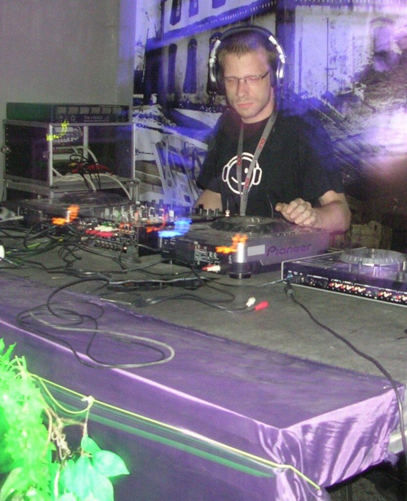Poza tym, był to dla mnie rodzaj terapii. Jak wspomniałem wcześniej, całe swoje nastoletnie i początek dorosłego życia spędziłem w czterech ścianach, z rodzicami, prawie nie wychodząc z domu ze względu na warunki PRL-owskiego blokowiska. To sprawiło, że w wieku 23 lat byłem panicznie przerażony na samą myśl o interakcji z kimś obcym, problemem było nawet wyjście na zakupy. a chorobliwa nieśmiałość to powinno być moje drugie i trzecie imię. DJ-ing był po prostu “szokowym” sposobem na wyjście ze strefy komfortu, na zasadzie „teraz albo nigdy, musisz się przełamać, wyjść i zagrać”. To wtedy nauczyłem się nie myśleć za bardzo tylko po prostu działać, bo gdy już byłem w klubie i zbliżała się godzina mojego seta, nie było odwrotu. Zresztą sporo z tych imprez zagrałem ze wzrokiem wlepionym w konsoletę, dopiero z czasem nauczyłem się patrzeć w kierunku ludzi na parkiecie i jakoś reagować na to co się dzieje wokół..