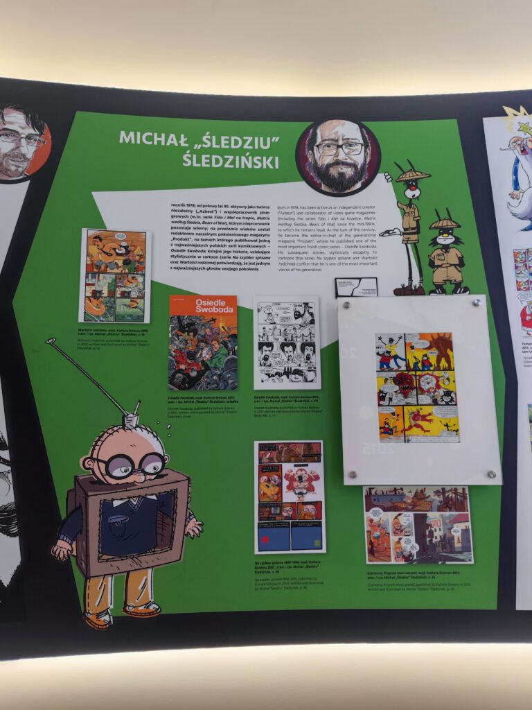 W drugiej części natomiast muzeum przedstawia proces powstawania komiksu – od pomysłu, przez wybór stylu „kreski” do gotowych zeszytów, oczywiście nie obyło się też bez prezentacji postaci najważniejszych polskich twórców.
