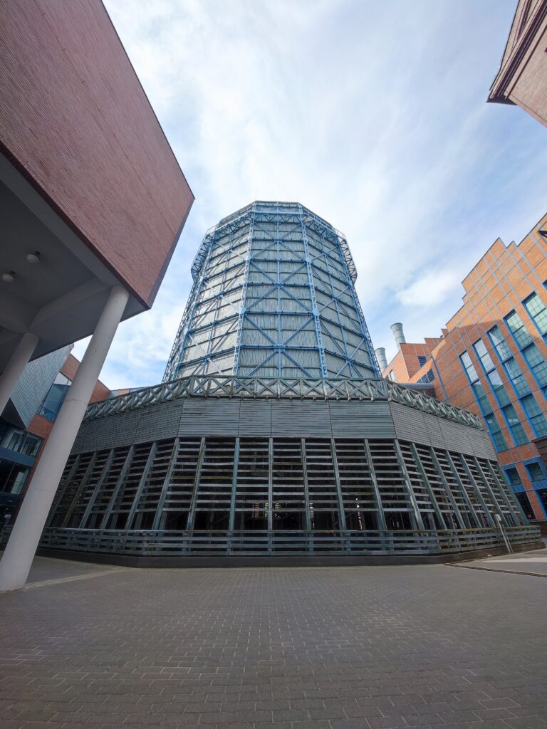 Samo Muzeum, czy bardziej całe EC1 powstało na terenie pierwszej łódzkiej elektrowni – która w ten sposób stała się miejscem, gdzie realizowane mogą być różne wydarzenia kulturalne i rozrywkowe. Już samo EC1 robi wspaniałe wrażenie – z jednej strony odświeżone do ostatniej cegły, z drugiej – wszystkie pozostałe instalacje, włącznie z chłodnią kominową wkomponowaną w jeden z dziedzińców przypominają o industrialnych korzeniach tego miejsca. Oczywiście samo muzeum jest w pełni przystosowane dla osób z problemami z przemieszczaniem się. I tu muszę po raz kolejny pochwalić Łódź, a jednocześnie ze smutkiem skonstatować, że władze Katowic nie potrafią w rewitalizację poprzemysłowych budynków. To, co w Łodzi staje się nowym centrum kulturalnym miasta, w Katowicach jest burzone – pół biedy jeśli w to miejsce robi się coś interesującego, jak Muzeum Śląskie, gorzej jeśli jest to miejsce pod nowy hipermarket albo biurowiec. Zresztą rewitalizacja pod Muzeum Śląskie też nie jest idealna – większość zabudowań dawnej kopalni zmieniła się w gruzy, kilka małych budynków wyremontowano, a resztę muzeum stanowi zupełnie nowa architektura. Ale o tym może przy okazji innego wpisu.